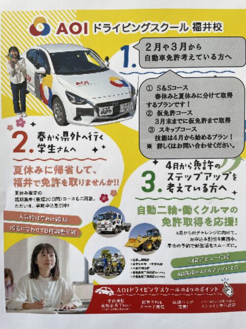 AOIドライビングスクール福井校もブース参加するので、遊びにきてね\(^o^)/