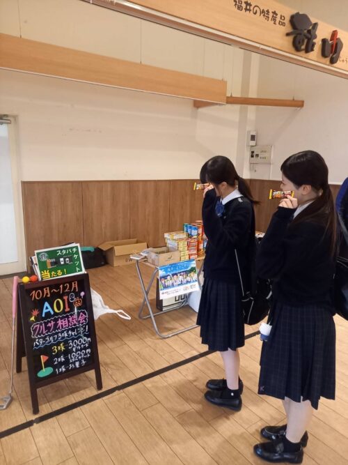 TOP webマガジン えちぜん鉄道西福井駅クルサ催事場 webマガジン えちぜん鉄道西福井駅クルサ催事場 2025年10月~12月 えちぜん鉄道西福井駅クルサ催事場で自動車学校イベントを開催しました。 パターゴルフに挑戦で、スタバチケットもらえたかな\(^o^)/